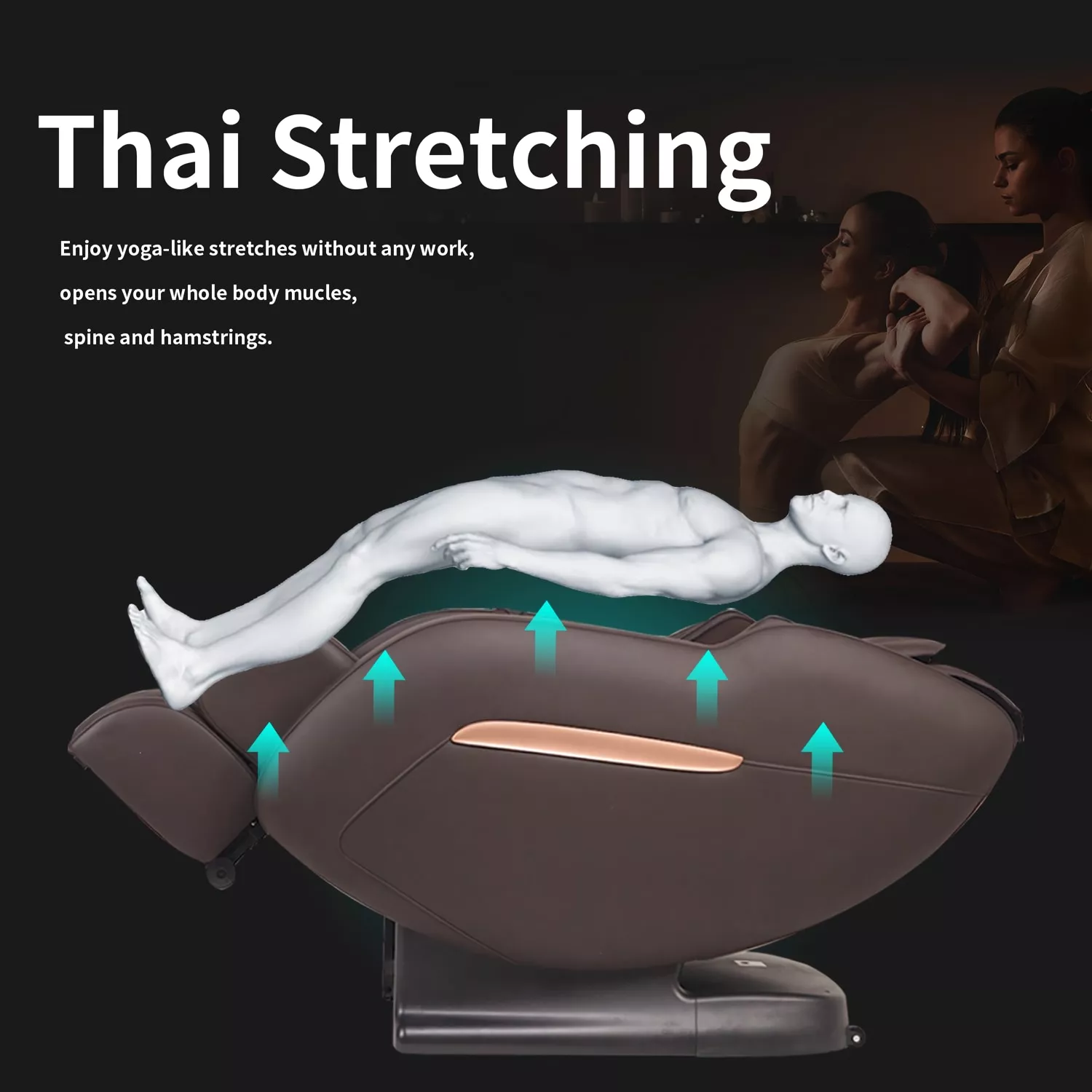 What sets our massage chair apart is the attention to detail. The Thai Stretch function revitalizes your body by mimicking yoga-like stretches, while the SL-Track system ensures a comprehensive massage from neck to hips. The chair’s unique flexible shoulder width adjustment, coupled with dual-action foot rollers and air massage, provides a full spectrum of comfort. Complete with fast heating and Bluetooth audio immersion, this chair is not just a piece of furniture, but a gateway to your personal oasis.